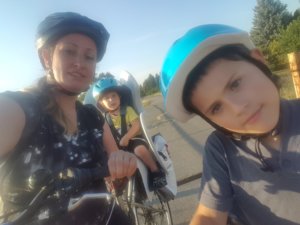 Majd egy kis pihenés után egy előre megtervezett, általam már bejárt útvonalon elindultunk bringázni a fiúkkal. Kb 25 km volt a táv, számomra fontos, hogy végig bicikliúton tudjunk haladni, és így biztonságban tudhassam őket. Még így is viselünk sisakot, biztos, ami biztos 🚴♀️⛑