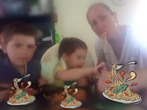 Miután hazabicóztunk, jöhetett a finom ebéd. A fiúk imádják a tésztaételeket, és ezen a napon például pont ezt kaptak. A rizstészta elegendő energiát ad az elkövetkező kalandhoz, de lassabb felszívódású, mint a hagyományos spagetti, viszont ugyan olyan finom.